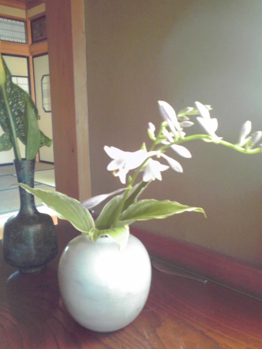 仕方なくなく花を生けました。