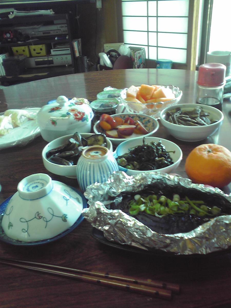 手前のアルミホイルがその焼き茄子。